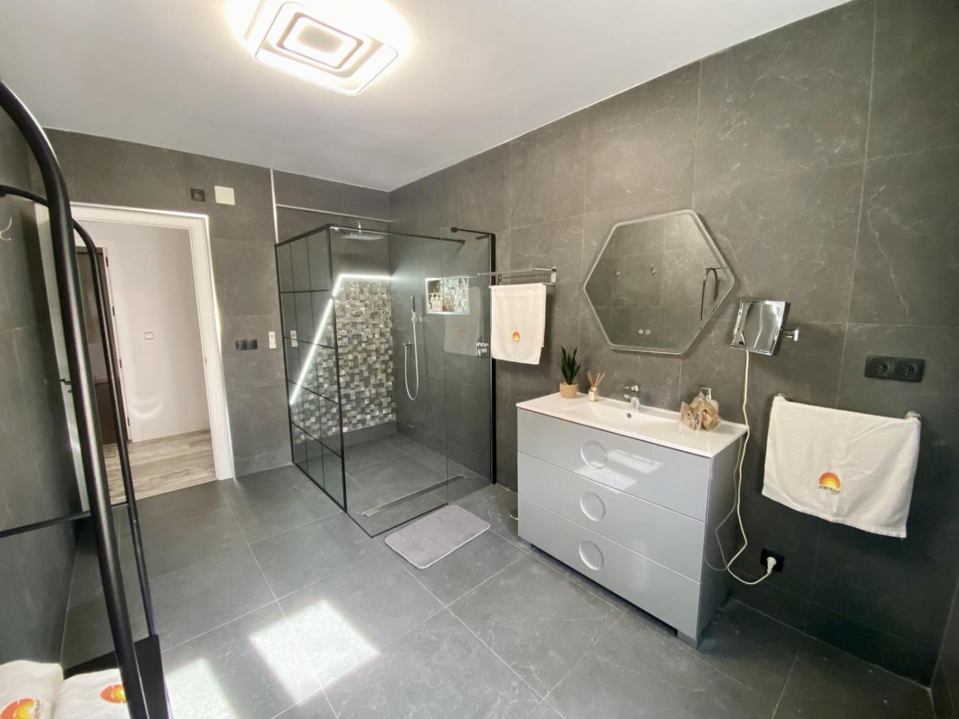 The spacious apartment with a terrace and mountain views features 3 bedrooms, a living room, a flat-screen TV, an equipped kitchen with a dishwasher and an oven, and 2 bathrooms with a walk-in shower. Towels and bed linen are provided in the apartment.