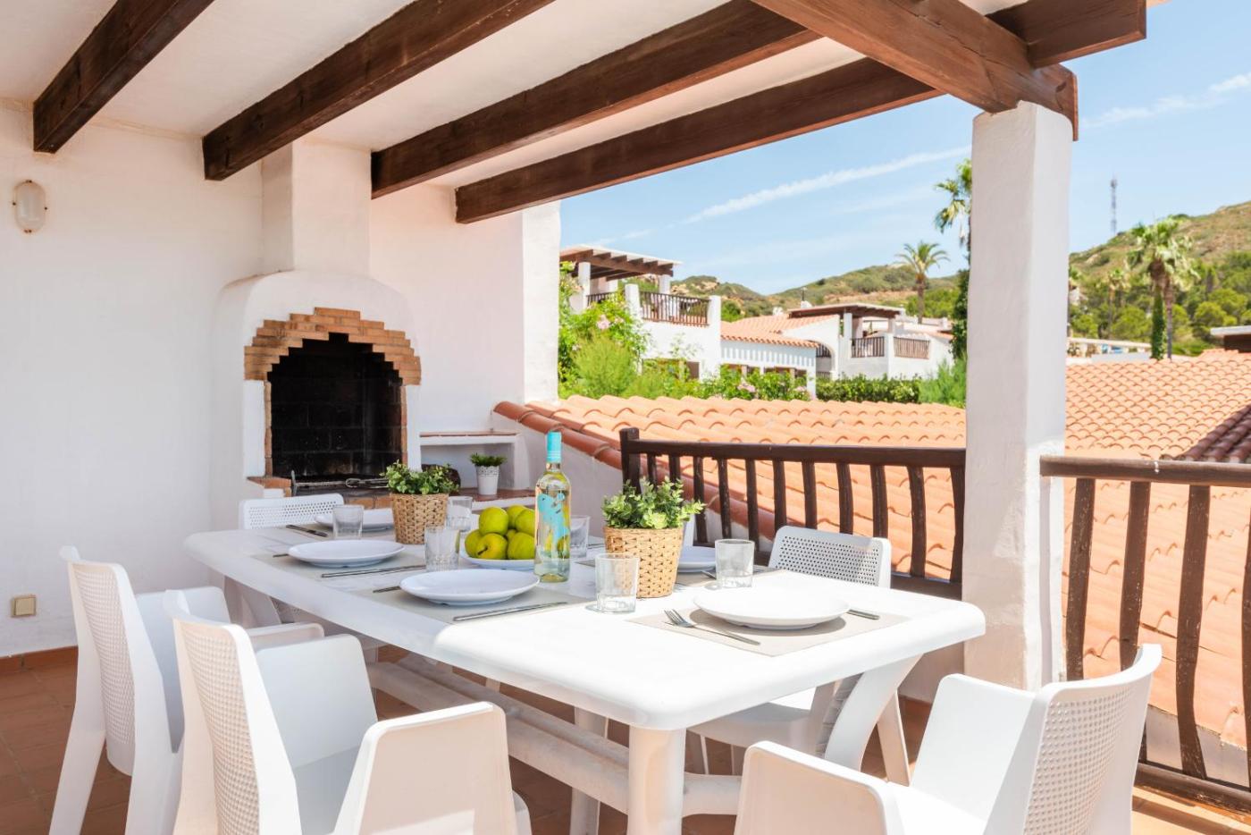 The air-conditioned Playas de Fornells villas feature traditional earthenware tiles and wooden beams.