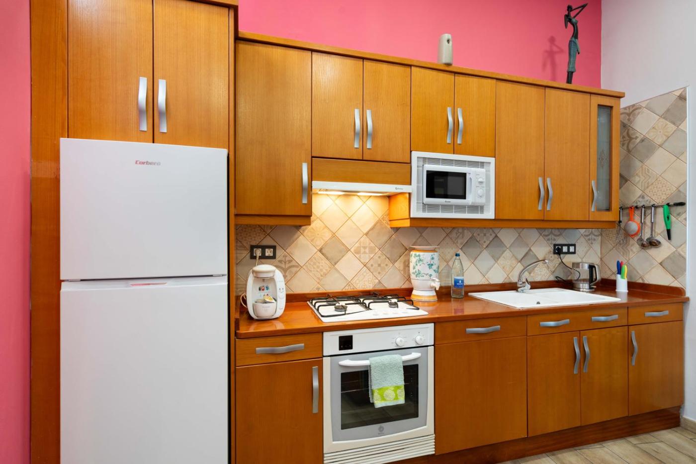 Studio. The studio provides a sofa, as well as a private bathroom boasting a shower. A kitchen fitted with a refrigerator, kitchenware and a microwave is available for cooking and storing food. The studio offers a tea and coffee maker, a dining area, a wardrobe, a flat-screen TV, as well as garden views. The unit has 1 bed. ;