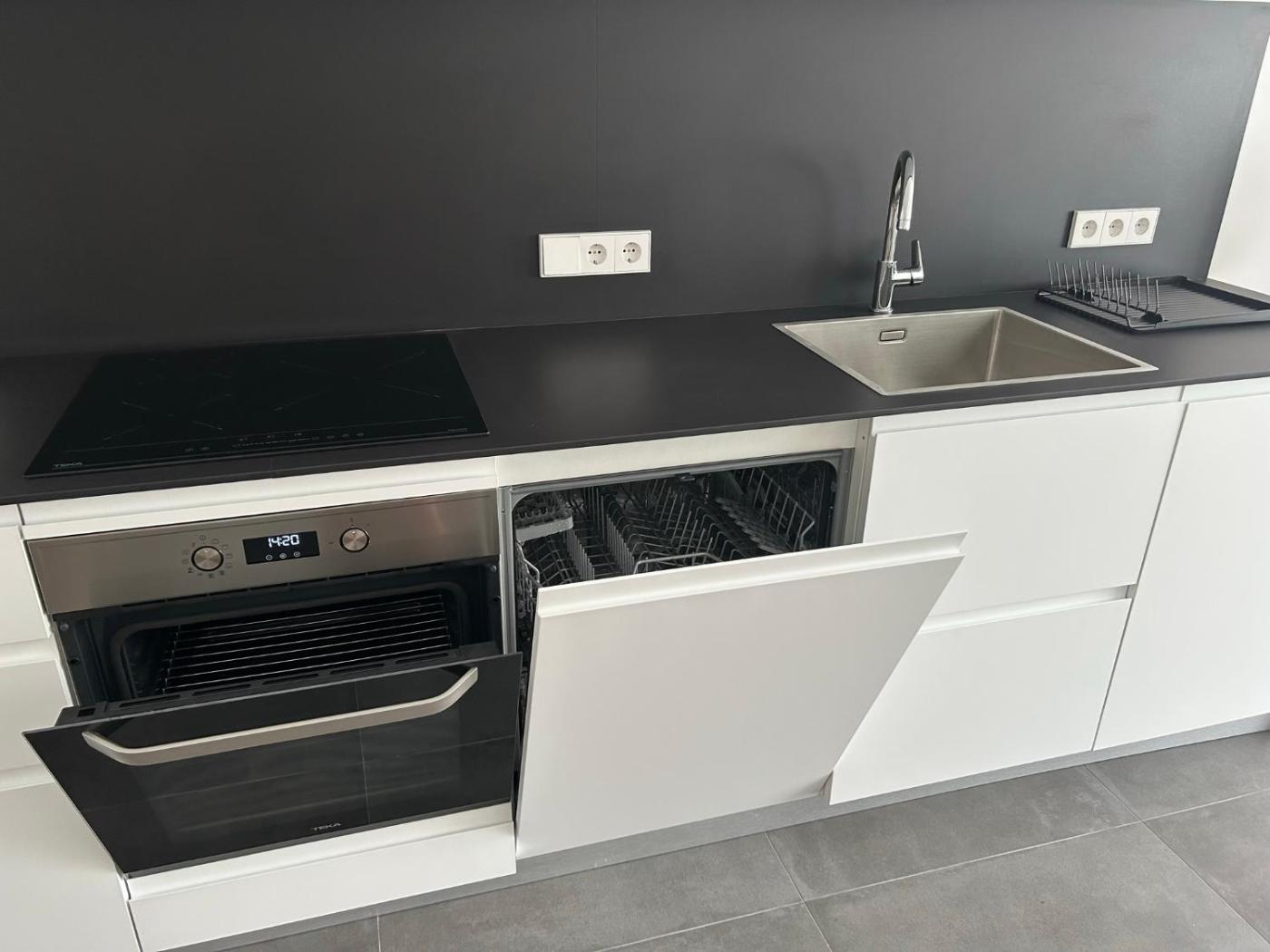 Three-Bedroom Apartment. This spacious apartment consists of 3 bedrooms, a kitchen and 2 bathrooms with a walk-in shower and a bath or a shower. Guests can make meals in the kitchen that is equipped with a stovetop, a refrigerator, a dishwasher and kitchenware. The air-conditioned apartment provides a flat-screen TV, a washing machine, a tea and coffee maker, a sofa as well as a quiet street view. The unit offers 4 beds.