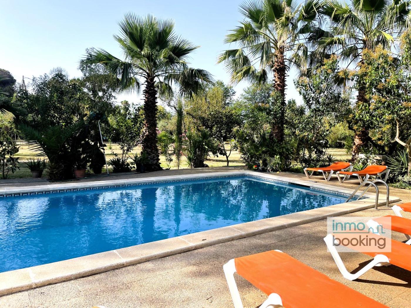 The spacious holiday home with a terrace and pool views has 5 bedrooms, a living room, a flat-screen TV, an equipped kitchen with a dishwasher and a microwave, and 2 bathrooms with a shower. Guests can enjoy a meal on an outdoor dining area while overlooking the garden views. For added privacy, the accommodation features a private entrance.