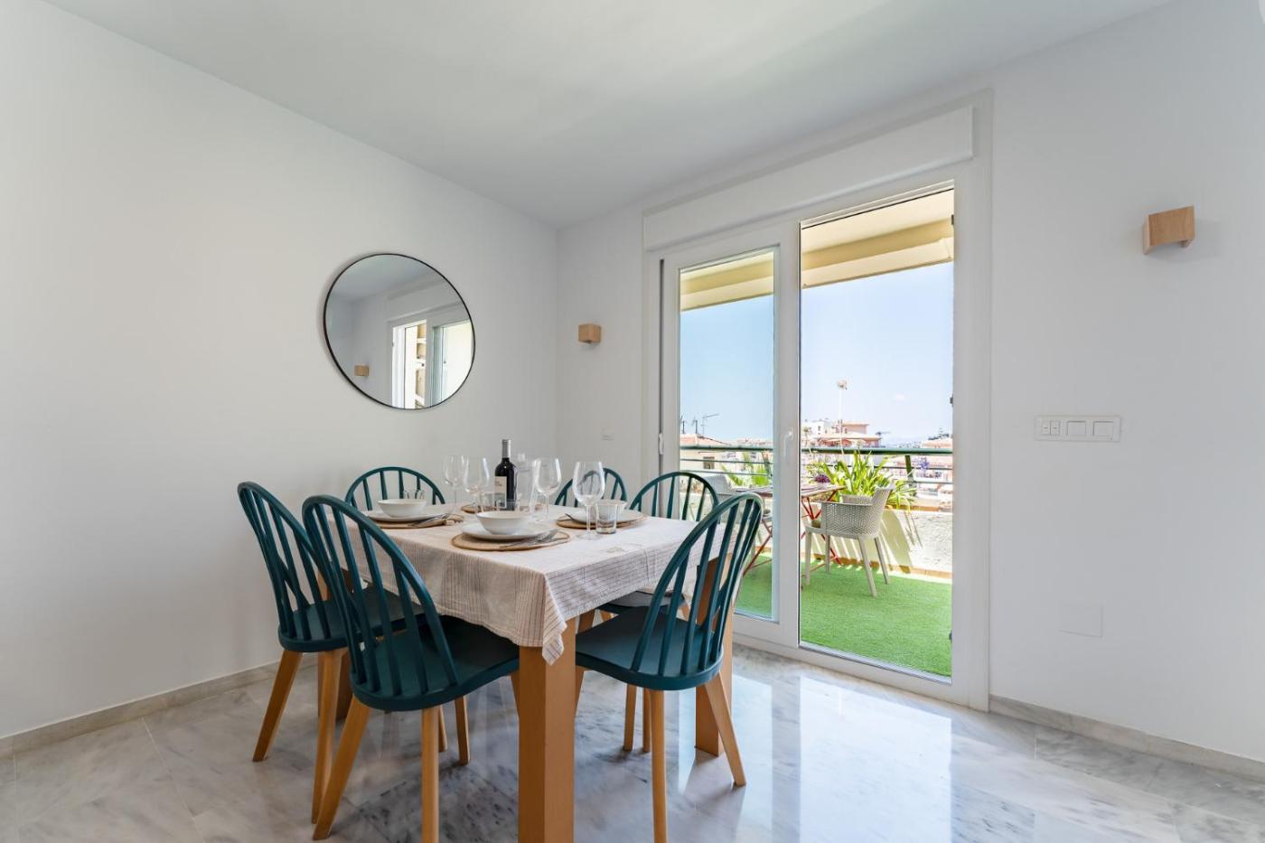 The spacious apartment with a terrace and sea views features 3 bedrooms, a living room, a TV, an equipped kitchen with a dishwasher and an oven, and 2 bathrooms with a shower. Towels and bed linen are provided in the apartment. The property has an outdoor dining area.