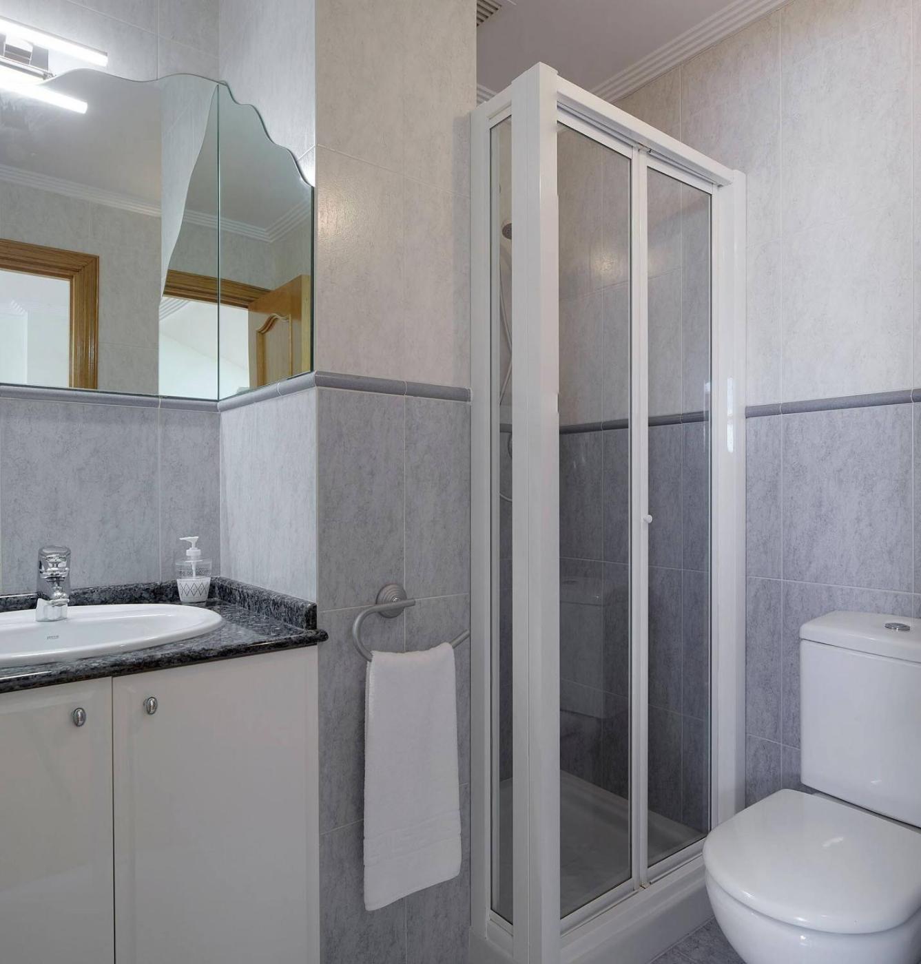 The spacious apartment has 3 bedrooms, a TV, a fully equipped kitchen with a dishwasher and a microwave, a washing machine, and 2 bathrooms with a bath.